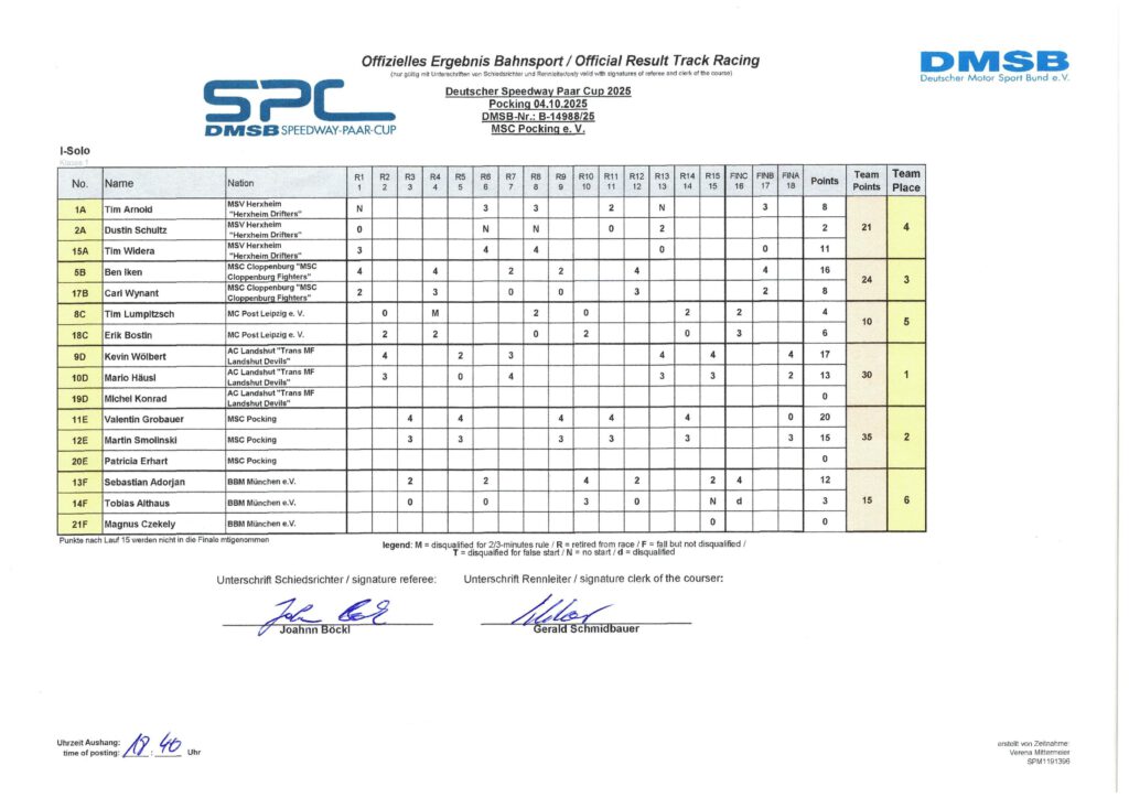 Die Anfrage für die Presseakkreditierung muss bis spätestens 25.September 2025 schriftlich an m.absmeier@msc-pocking.de gestellt werden.
